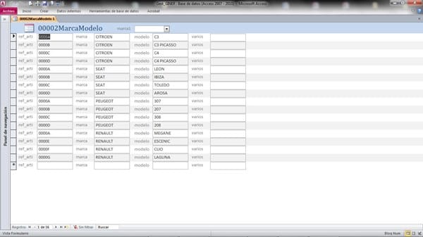 En el encabezado del formulario he creado un cuadro combinado, que quiero que filtre el campo [Marca].