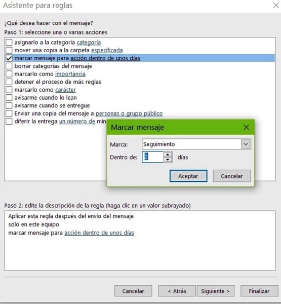 Como se puede hacer una regla personalizada en Outlook 2013 para que al enviar un mail me haga un "reminder" posterior