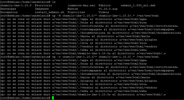 cp: no se crea el enlace duro «/var/www/html/chamilo-lms-1.10.0» al directorio «/var/www/html/.»