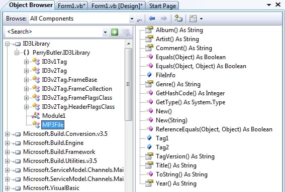 Luego cuando ya tengo todas las rutas en el listbox, me dispongo a usar la librería de "Perry’s ID3 Tag Library" para extraer por ejemplo el artista de cada uno de esos items de listbox y para no mesclarlos los envió a un segundo listbox. Y para esto me valgo de otro ciclo for each y ahí viene el problema, después de hacer el procedimiento y conseguir los primeros 25 a 50 tag el ciclo me tira un error de memoria.