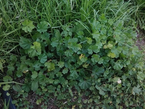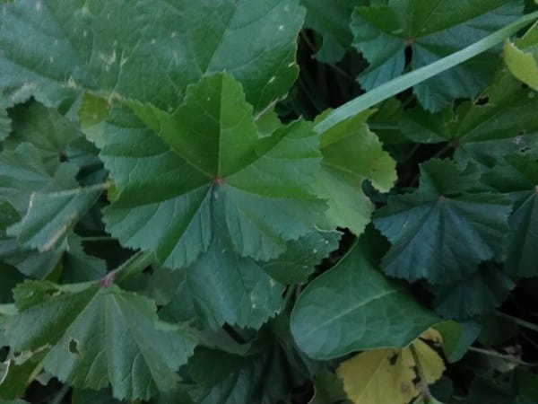 Hay unas 300.000 especies de plantas vasculares. En cada lugar geográfico hay sólo unos cientos o miles, así que saber donde la has encontrado ayuda. Las plantas se identifican sobre todo por detalles de las flores y frutos. Con los datos disponibles diré que parece una malva (una especie del género cuyo nombre científico es Malva), probablemente Malva parviflora, pero puede ser otra. Varias especies de malva son comunes en ambientes vulgares del tipo de los solares y bordes de camino, así que tienen distribuciones amplias, lo que suele dar lugar a que tengan muchos nombres distintos en la misma lengua, y que tengan nombre en decenas o cientos de lenguas. Aunque malva es un nombre popular, no excluyas que ahí le den otro u otros nombres.
