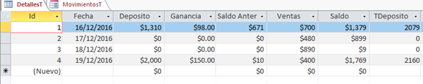 Ventas + Posdeposito - retiro que se encuentran en el formulario DetallesT.