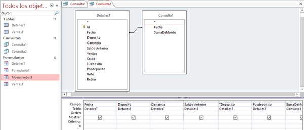 2º/ Crea una consulta con la tabla DetallesT y la consulta anterior, y relaciones ambas tablas por el campo fecha.
