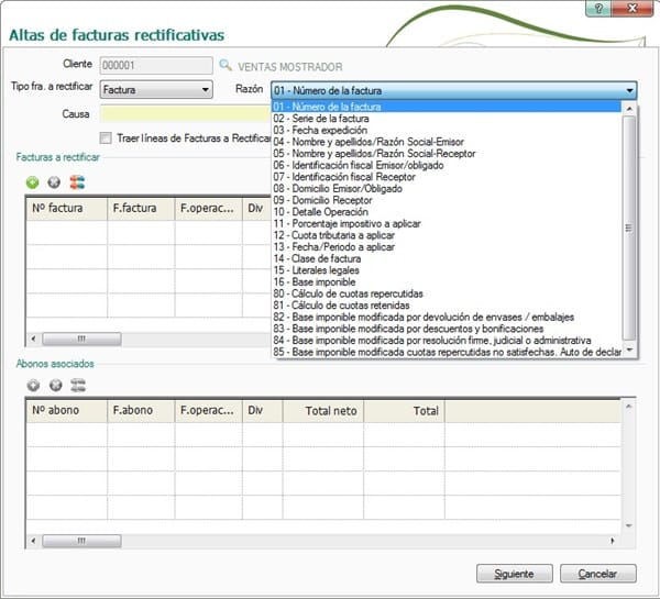 He realizado un envío de un pedido a un cliente con forma de pago Reembolso y se le ha facturado. En el momento de la entrega, el cliente ha rechazado el pedido y ha devuelto la mercancía. Por lo que entiendo que se debe realizar una factura Rectificativa. Al hacerlo con el Facturaplus, me pide una razón para la devolución y no sé dónde englobar esta situación. Adjunto imágen para que lo vean.