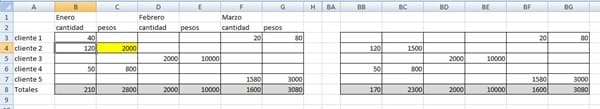 Copias el rango de datos, por ejemplo de "B3:G7" al rango de celdas "BB3:BG7".