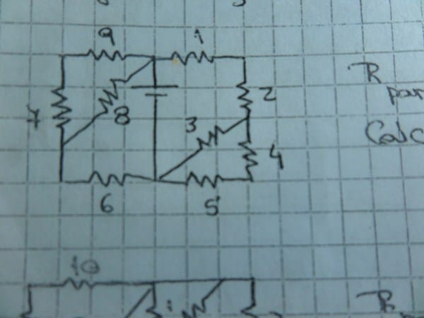 La resistencia total = Rtot. = paralelo de los dos sectores izquierdo y derecho.