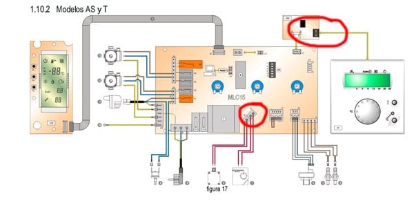 Os adjunto foto del esquema que me viene en el termostato y de como lo tengo conectado (ASÍ no funciona) me vienen 2 cables de la caldera el termostato es de pilas por lo que supongo que no necesita alimentación.