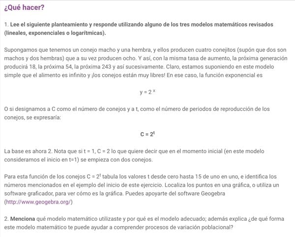 La base es ahora 2. Nota que si t = 1, C = 2 lo que quiere decir que en el momento inicial (en este modelo consideramos el inicio en t=1) se empieza con dos conejos.