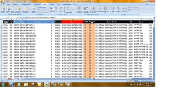 1.- Tengo una plantilla con una hoja llamada "Ruteo", allí pego los datos desde la columna A1 hasta la R*** Variable, el rango de datos puede variar según los pedidos. (Como se muestra en la Foto 1)