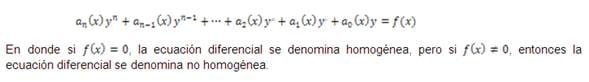 Se dice que una ecuación diferencial ordinaria de orden n es lineal si F es lineal en y, y',..., y(n). Esto significa que una ecuación diferencial ordinaria de orden n es lineal cuando F (x, y, y',..., y(n)) = 0 es: