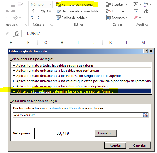 El formato de las celdas está puesto con dos decimales. Esto me vale para los euros y los dólares, pero no sé como hacer una fórmula para que si elijo el resultado en pesos me lo ofrezca sin decimales, manteniendo que si elijo euros y dólares me los siga enseñando con dos decimales.