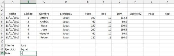 Estoy creando una base de datos y en concreto el dato que pretendo buscar sale de encontrar la fila donde está el cliente y a continuación identificar la columna correspondiente que coincide con el ejercicio seleccionado para a partir de ella conocer el máximo. El dato entonces se localiza 3 celdas después, en el caso, el dato buscado sería 266,6 (G7)