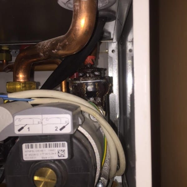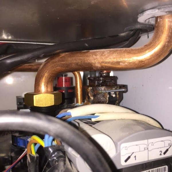 ¿Alguien me puede echar un cable con este problema? ¿Por qué tiene fuga esta válvula? Es una caldera que tan solo tiene 2 años. ¿Por qué está tan sucia de óxido? ¿La solución es cambiar la válvula? ¿Se puede hacer fácilmente?