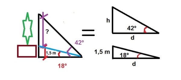 Si separas el grafico te quedan dos triangulos rectangulos, en donde uno tiene como incongnita la distancia y altura y el otro unicamente la distancia. ¿Qué dijimos que tenian en comun?