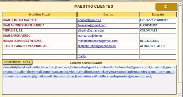 Necesito que a través de un botón seleccionar todos los correos de los clientes y colocarlos en un campo llamado TOTALCORREOS que pinchando sobre el me mande todos las direcciones a Outlook para enviar el mismo correo a los Clientes.