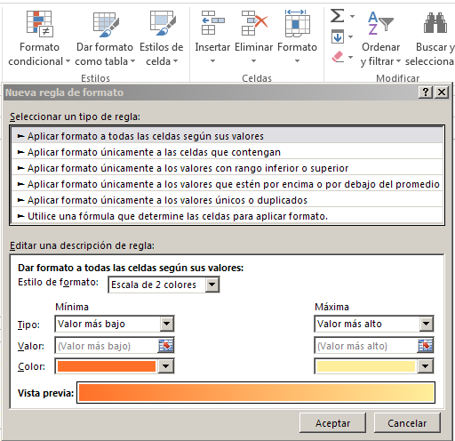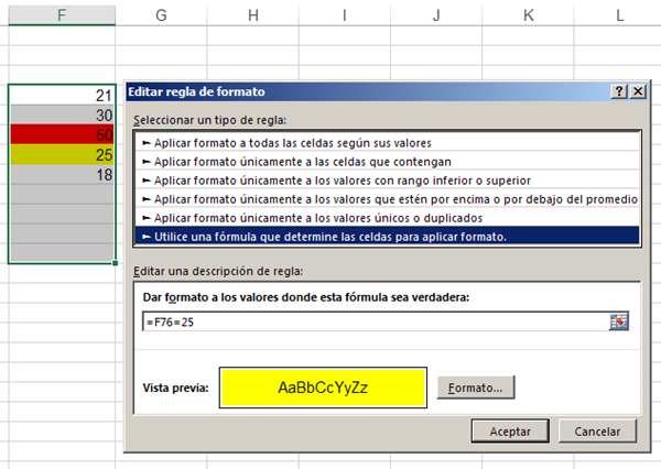 y, con el botón de formato seleccionas el color a darle a la celda si pasara eso.