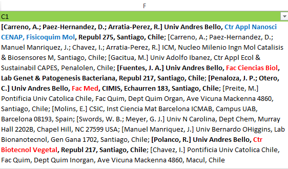 Como te fijas habían más autores de Univ Andres Bello que la macro no está detectando y por ende tampoco separando.
