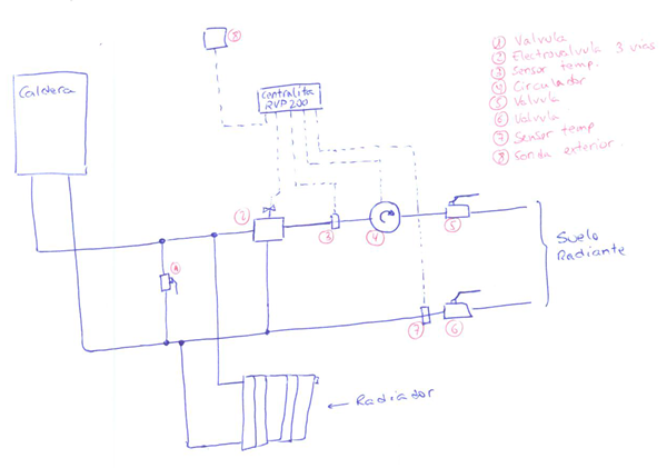 Tengo un sistema de calefacción y ACS como el que os muestro en el croquis.