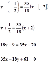 Si la recta pasa por los puntos A(-2, -¿1/2) y B(-1/5,3) cual es la ecuación de la recta?