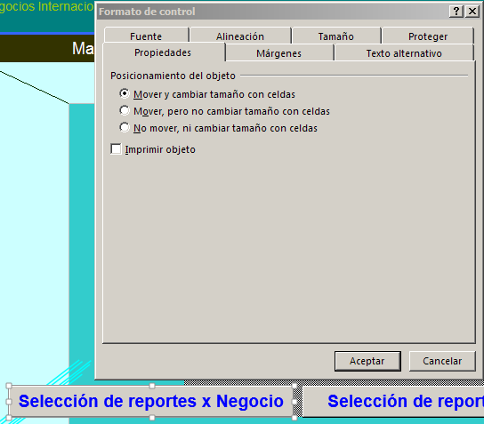 Para que no se imprima un botón de MS Excel, dale click derecho del mouse sobre él y elige Formato de control.