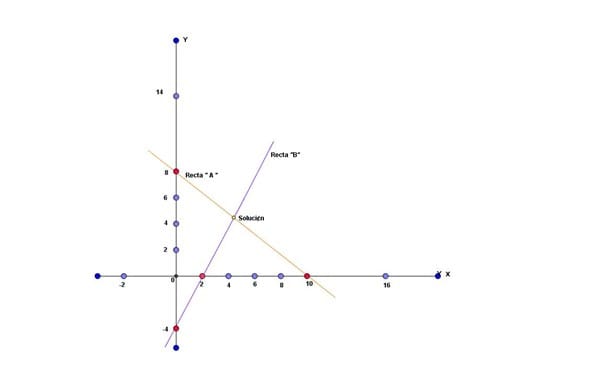 - La recta “ A “ corta a los ejes X e Y en los puntos ( 10, 8 ).