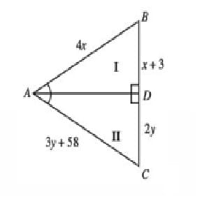 Los triángulos I y II son congruentes. Determina el valor de las incógnitas