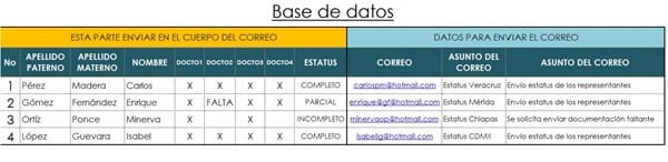 Macro para enviar individualmente a un listado de correos la información contigua de las celdas de la derecha.