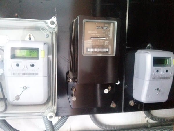 2) Acabo de mirar mi contador, y según parece es trifásico. He hecho una foto que te adjunto. Pone "trifásico a 4 hilos" ¿? Como te digo no entiendo mucho. Lo de trifásico voy cogiéndolo. He observado que los demás contadores son de telegestión, el mío no. El mío es el negro. Aunque creo que me lo cambiarán en breve.