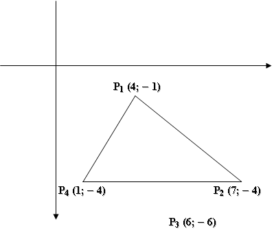 Dados los puntos P1 (4, -1), P2 (7, - 4), P3 (6, -6) y P4(1,- 4), ¿Cuáles de ellos son vértices de un triángulo rectángulo?