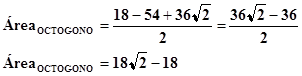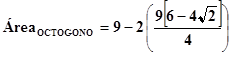 En un cuadrado de lado 3 se cortan triángulos rectángulos isósceles en cada una de sus cuatro esquinas, de tal manera que se forma un octágono regular al interior del cuadrado. Demostrar que el área de este octágono se puede expresar como