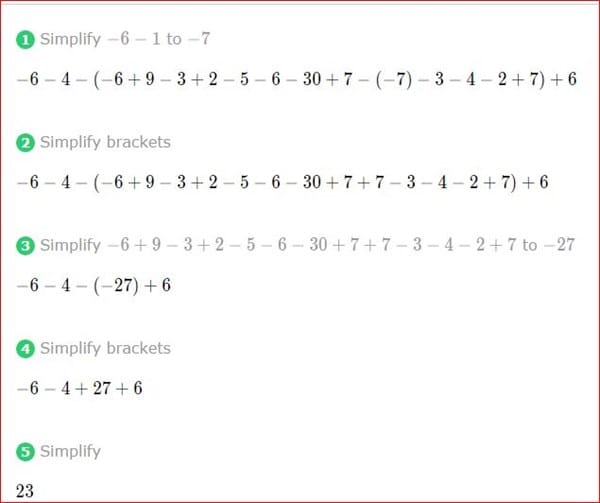 -6-4-{-6+9-3+2-5+[ -6-30+7-(-6-1)-3-4]-2+7}+6 cual es la respuesta aplicando la regla de los signos
