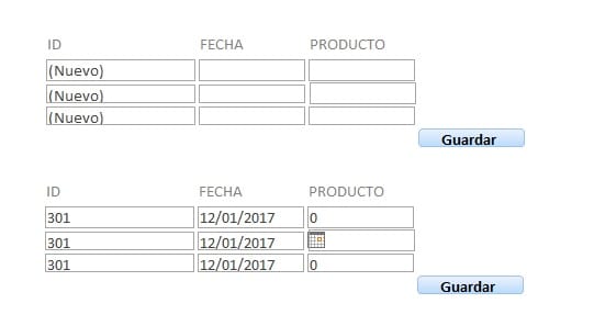 Quería saber en formulario si quiero poner varias filas de cuadro de texto/cuadro combinado y que cada una sea independiente para poder después guardar todas las filas de golpe en registros independientes ¿cómo se debe de hacer?