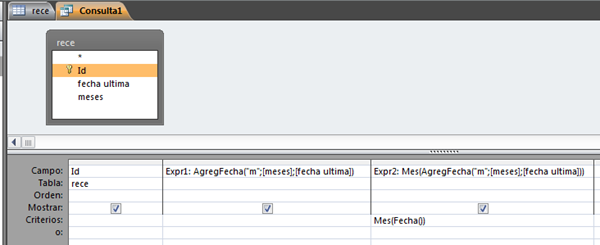 No se cómo hacer una columna en la tabla calculando la siguiente fecha a partir de la última revisión y de la periodicidad. Para calcularlo en el informe o formulario he utilizado: AgregFecha(“m”; [meses entre revisiones];[Fecha última revisión]).