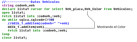 Lo que quiero hacer es cuando le de en GUARDAR, que salve el VEH_PLACA de dicho vehículo ya que solo estoy mostrando el color. Como hago HELP!.
