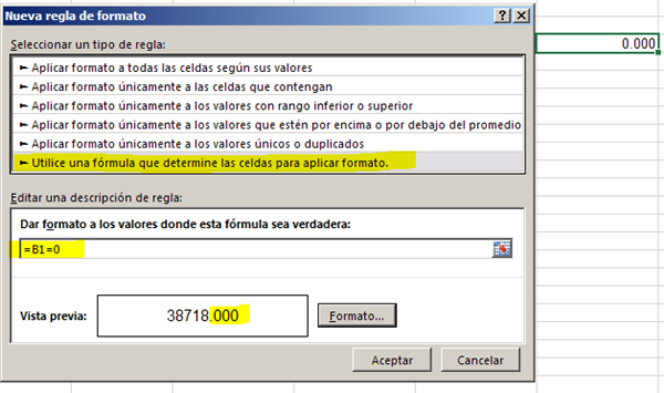 Y me sale con esta fórmula me sale vacía cuando es 0