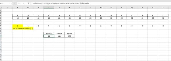 Formula suma de columnas intercaladas en excel.