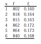 La siguiente tabla, muestra la distribución de 5001 lanzamientos de un dado.
