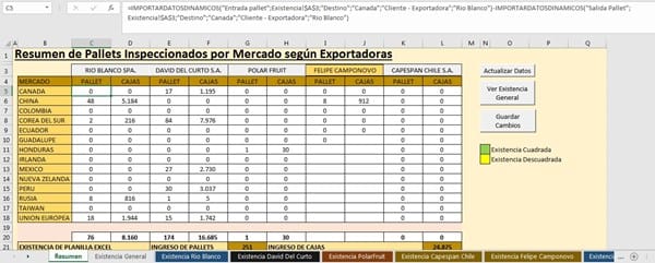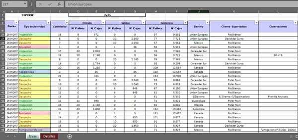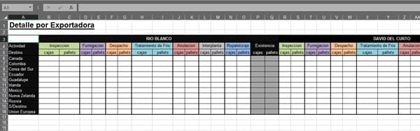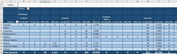 Tengo una tabla o una base de datos la cual se ingresa diariamente las actividades de una exportadora: