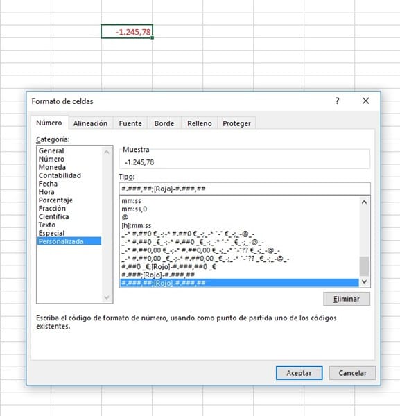 En, Fórmula, Formato celdas, Personalizable, tengo puesto: