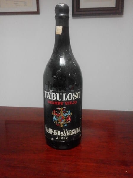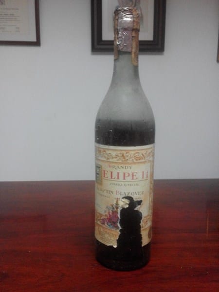 O en el posible valor actual de botellas de vino y de brandy antiguos de los que adjunto fotos. Fabuloso con sello de 4 Ptas. Y Felipe II con sello de 80 cnts.