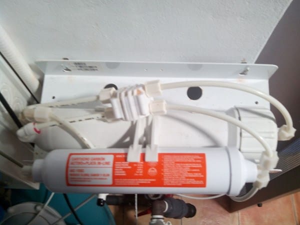 Pensé que pudiese ser de la válvula esa que tiene dos entradas y dos salidas y la he cambiado, pero el problema no se ha solucionado. He revisado las conexiones y los cartuchos de pretratamiento, la posición de la membrana y todo está correcto, pero algo debe haber mal porque la medición del agua me da muy alta, 325 partículas e imagino que se debe a que se está mezclando de alguna forma el agua osmotizada con la del grifo.