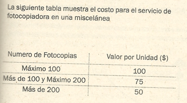 La expresión que determina el costo de x copias está dada por