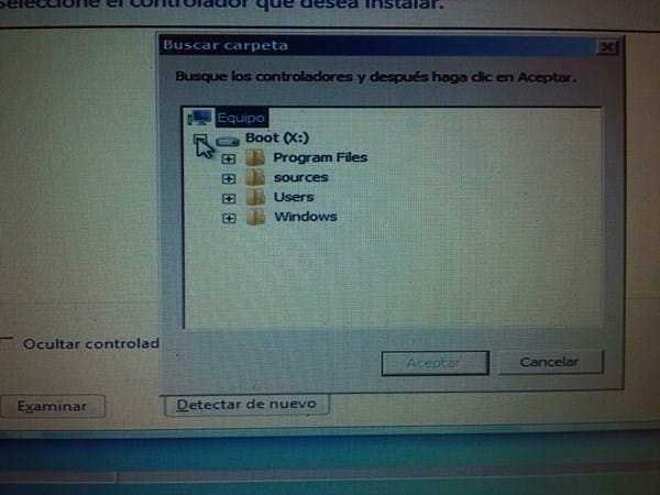 Y cuando intento meter un driver desde un dispositivo cualquiera, no lo reconoce, solo el Boot (X:) que genera el instalador de windows, no importa que archivos o drivers meta en el pendrive, el instalador no detecta el USB "fisico" ni ningún archivo que haya metido en cualquiera de las carpetas de éste.