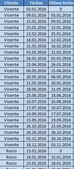 Ejemplo: en el primer caso sería Nulo, porque no tiene ninguna otra operación previa. En el segundo sería 05.01.2016 puesto que es la fecha anterior. Podéis ver lo que quiero conseguir en la imagen 2
