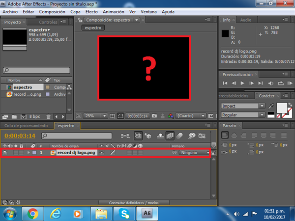 No me visualiza las capas al arrastrar un gráfico en el After Effects cs4