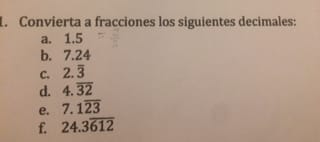 Hola amigos, ¿me podrian ayudar con estos ejercicios? Necesito pasar de decimales a fraccion a estos numeros