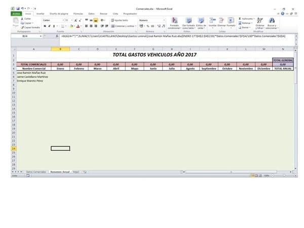 Necesito que cuando abra la hoja donde se totaliza, pueda traerme los datos de cada comercial por cada mes.