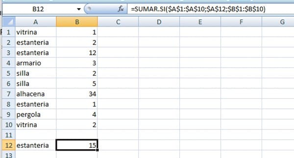En este caso estoy buscando la palabra estanterías y quiero que sume los valores que están alado en este caso tendría que salir 33