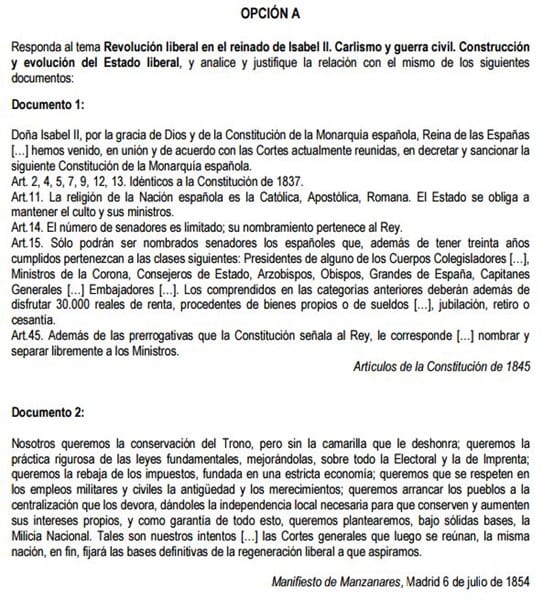 ¿Podéis resolverme esta prueba de historia de españa? Es de la selectividad de 2014-2015 en Andalucia. Gracias