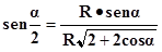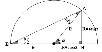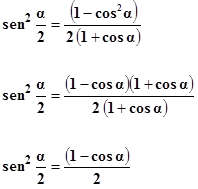 $$\begin{align}&sen^2 (α/2)=(1- \cos α)/2\end{align}$$De acuerdo a la siguiente figura: